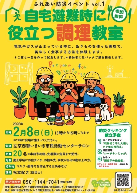 養正まちづくり協議会設立準備会では、「自宅避難時に役立つ調理教室」や「養正地域の食文化」など、地域のことを知ったり、地域の人とのつながりを作るためのイベントを開催します!