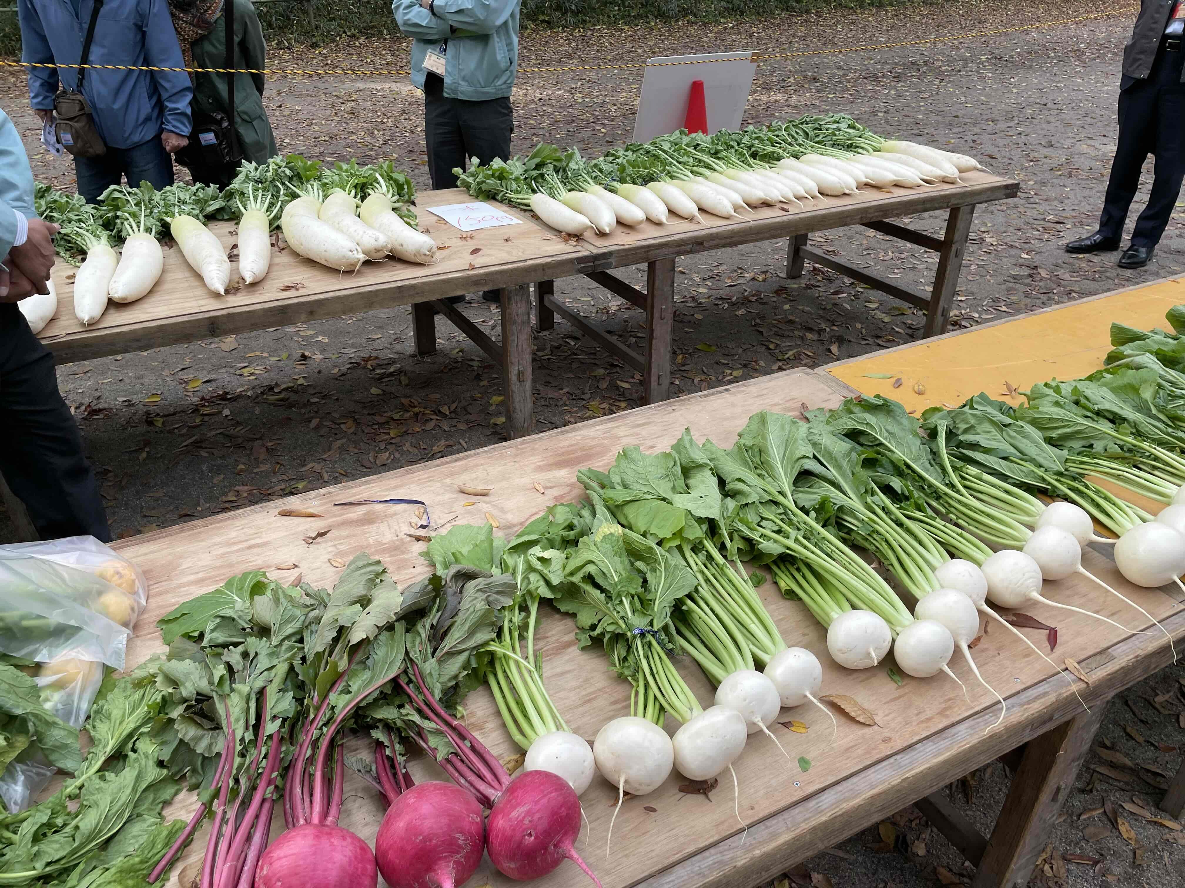 この催しは、農産物の品質や生産技術の向上を図るため、毎年開催されており、左京区の農家さんが大切に育てた、これから旬を迎える甘さたっぷりの冬野菜や、漬物などを出品し、出来栄えを競う品評会です。
