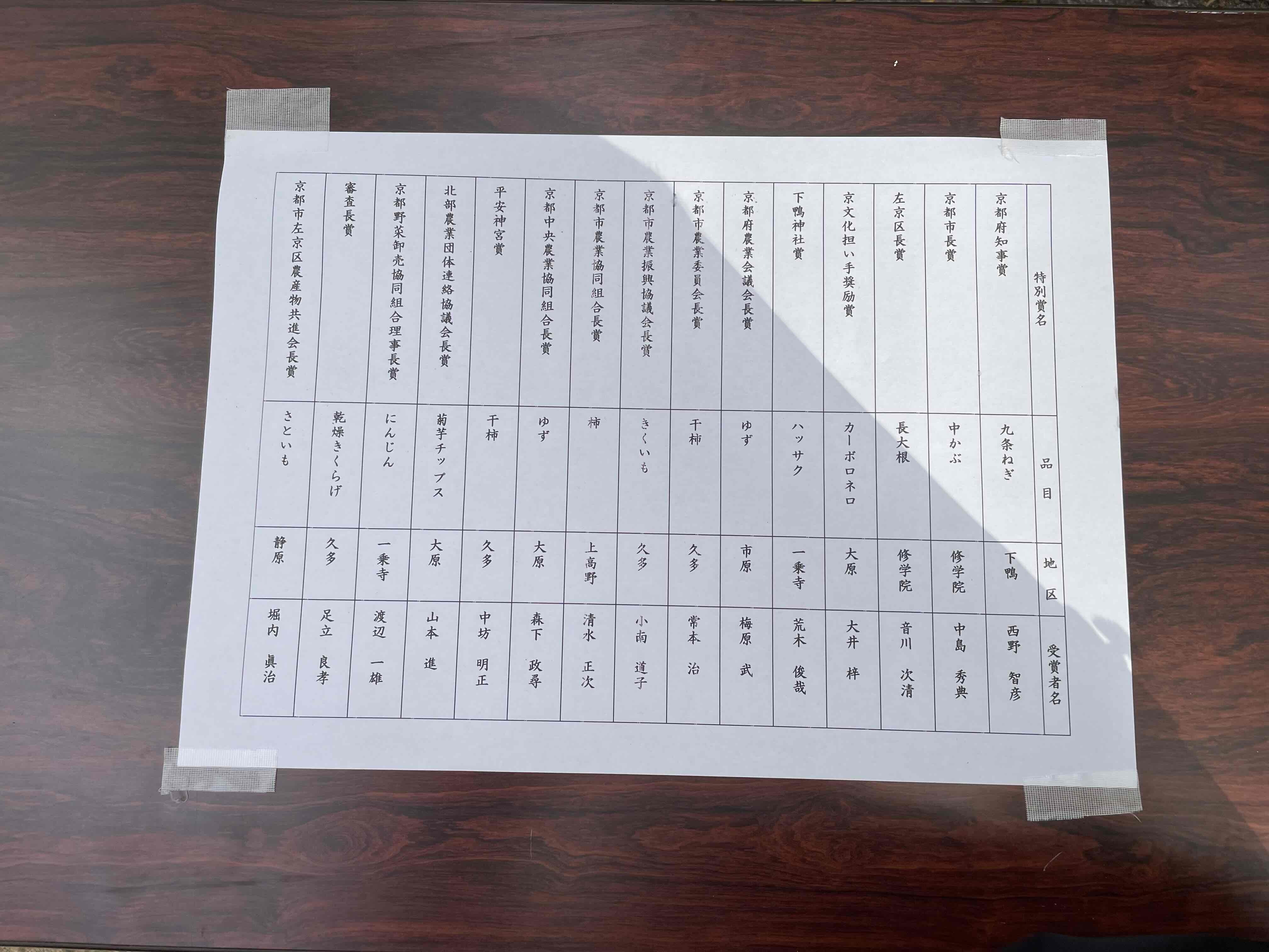 今年も206点もの多くの農産物が出品され、各賞が決まりました。左京区長賞は、修学院で採れた長大根が受賞されました。おめでとうございます。