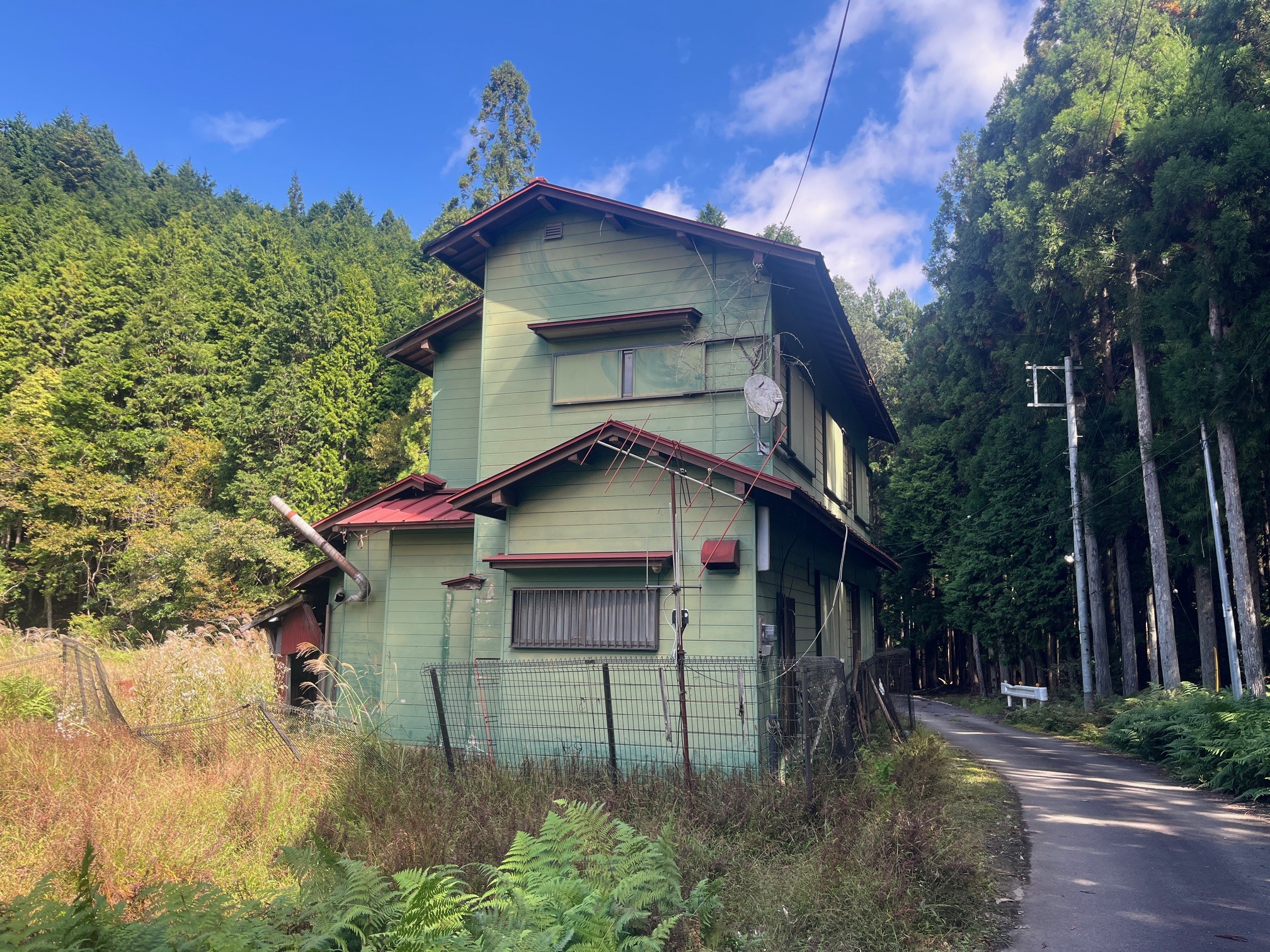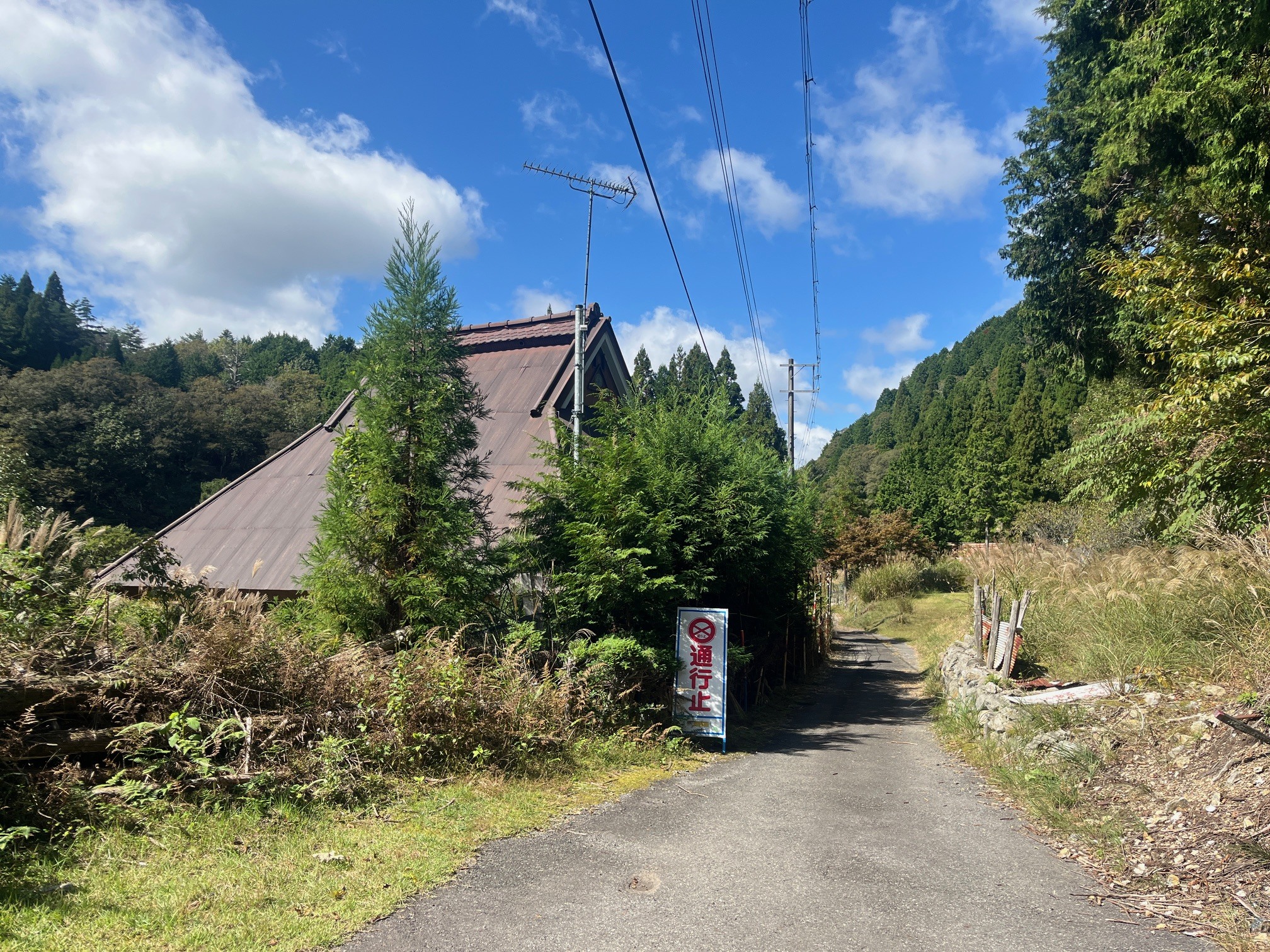 このあたりの道路を歩いていると、私の存在を検知してアラートが鳴るお宅がありました。草刈りもされており、日常的に人の出入りもあるのでしょう。
