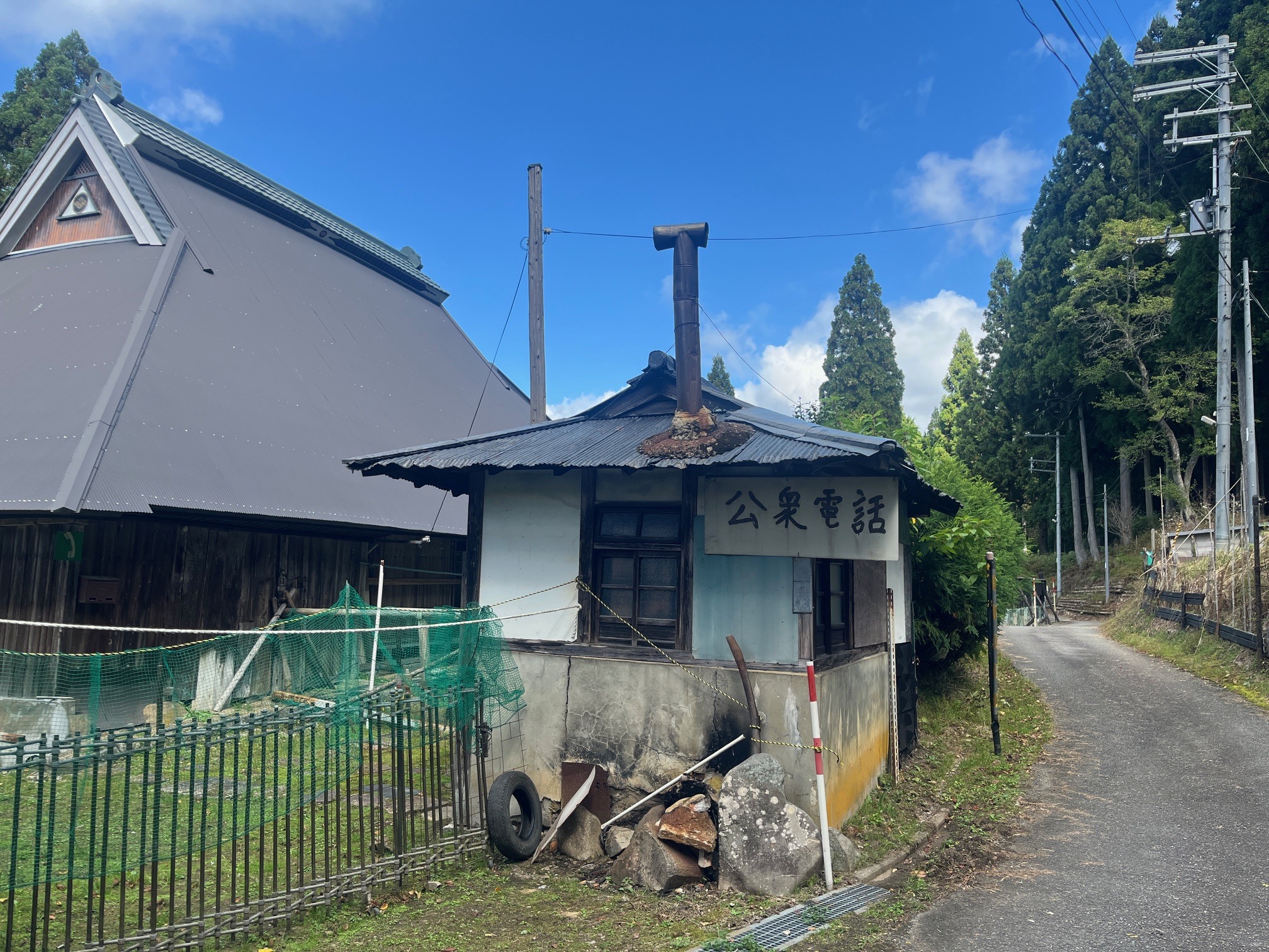尾越の集落に入ってすぐにある、公衆電話があったというお宅。家の方に電話があることを示すしるしが出ています。