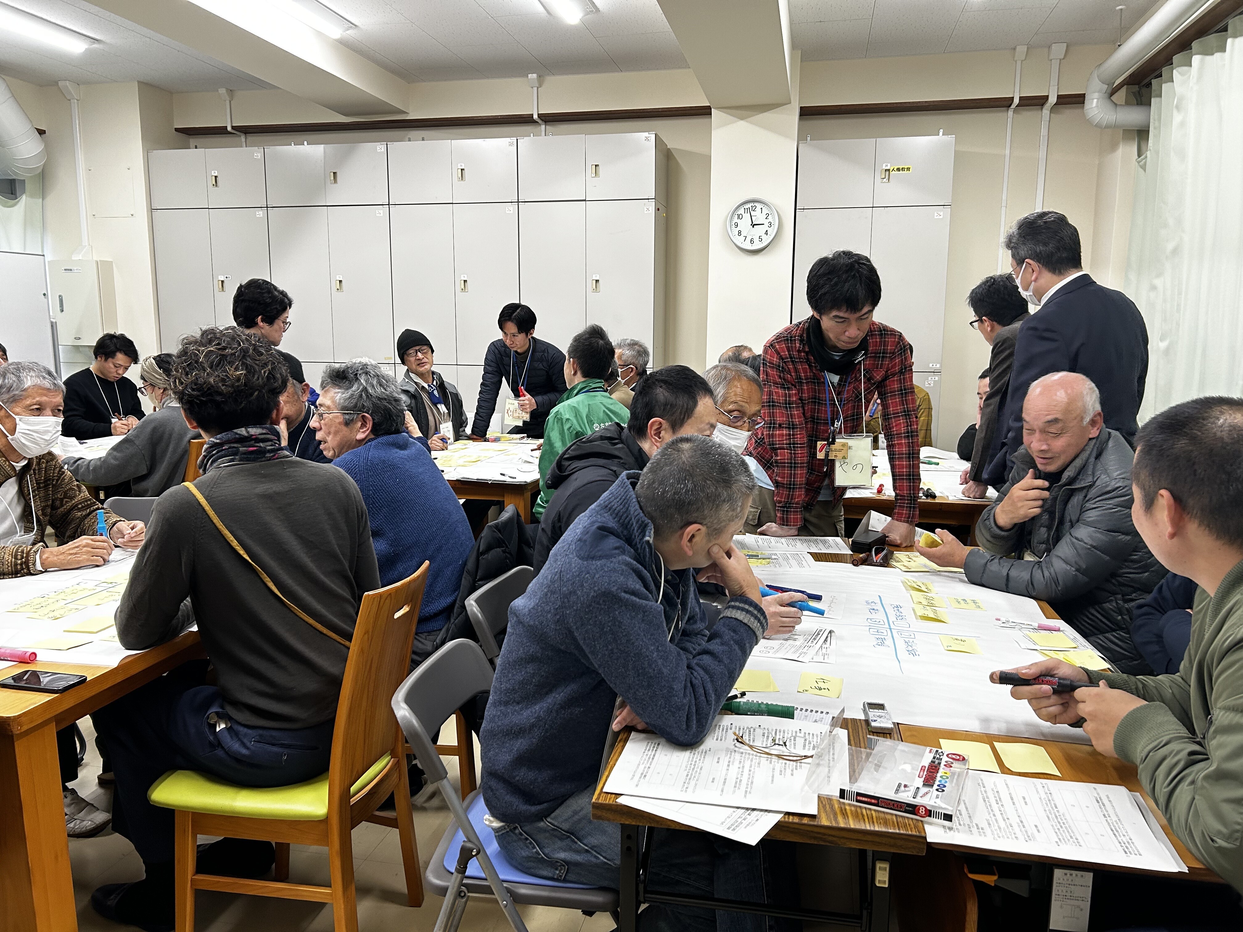 さらに令和8年2月には、市街地会場として、「左京区北部山間地域の将来像を考えるワークショップ@左京区役所」が開催されました。地域在住の方、地域出身で現在市街地に住んでいる方、地域で活動されている方等、様々な方が集まり、地域内外の視点から活発な対話が行われました。