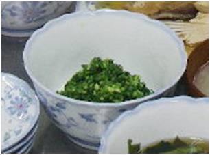 1 壬生菜はよく洗ってから株の部分を切り落とし,約3~5mmに切る。