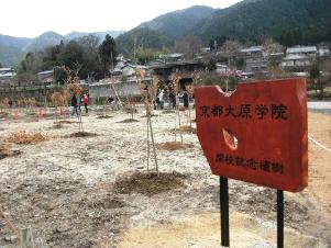 オオムラサキの成虫はクヌギの樹液をエサとしていることから,「京都大原学院」が昨年4月に開校した記念として,平成22年3月17日(水曜日)に学院の小中学生約80名がクヌギの幼木を植樹しました。