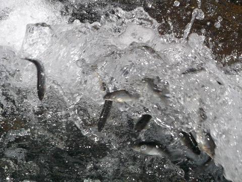 稚あゆ放流のようす