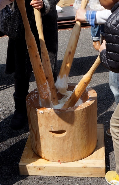 会場では,各種木工品や地域特産品の展示販売を始め,京都駅からバス1本でアクセスできる京北地域の魅力紹介パネルの展示,新聞などでも取り上げられたことのある木製棺,高性能林業機械の展示・操縦体験のほか,餅つき体験とふるまいが行われました。
