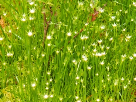 水分が多い箇所では,ニッポンイヌノヒゲ,アオコウガイゼキショウ,ミズオトギリ,ヒツジグサ,ホタルイなどが生育し,湿原内を流れる水路は,フトヒルムシロが水面をおおっています。