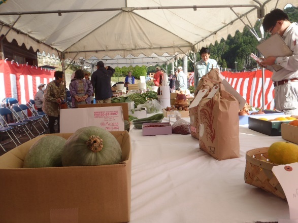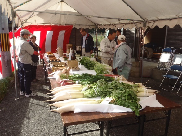 昨年度,試験的に開催された本催しは,今年度は農産物の直売や餅つきのほか,品評会が行われ,地域農家の方々が丹精込めて栽培した自慢の農産物が並びました。