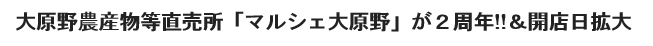 「里の駅大原」が開店10周年を迎えられ,感謝祭を実施されます。
