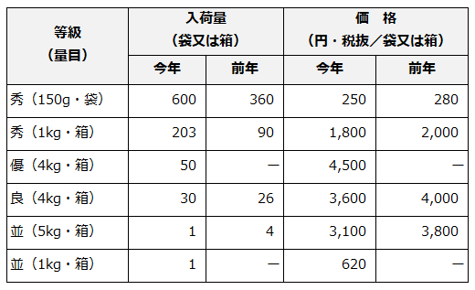 入荷量及び価格