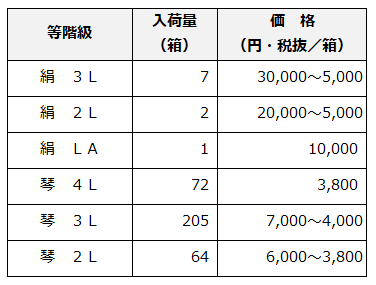 今年は、前年と比べて早い入荷となり、玉の肥大も良好です。7月の中旬頃までは十分な数量が見込まれ、8月上旬頃まで入荷する予定です。
