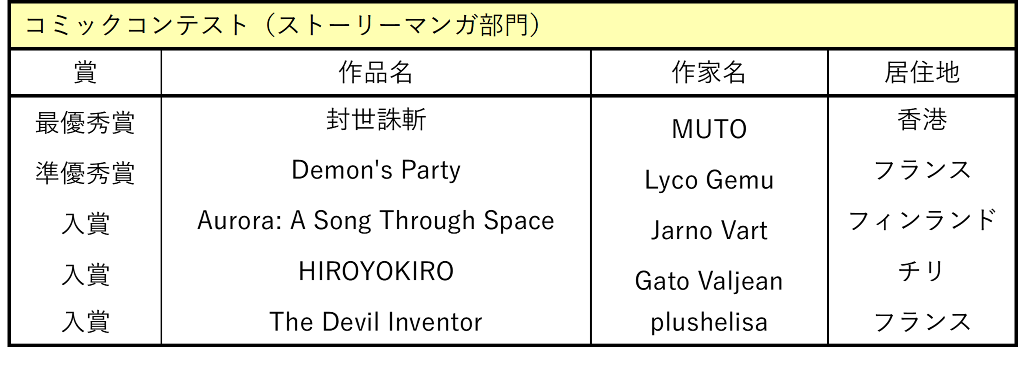 今年度は、コミックコンテスト(2部門)及びデジタルアニメコンテストの2つのコンテストで作品を募集したところ、71の国/地域から、630作品の応募があり、厳正なる審査の結果、以下のとおり、受賞作品を決定いたしました。