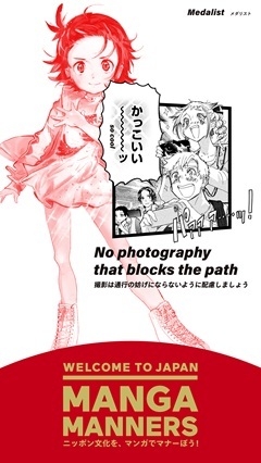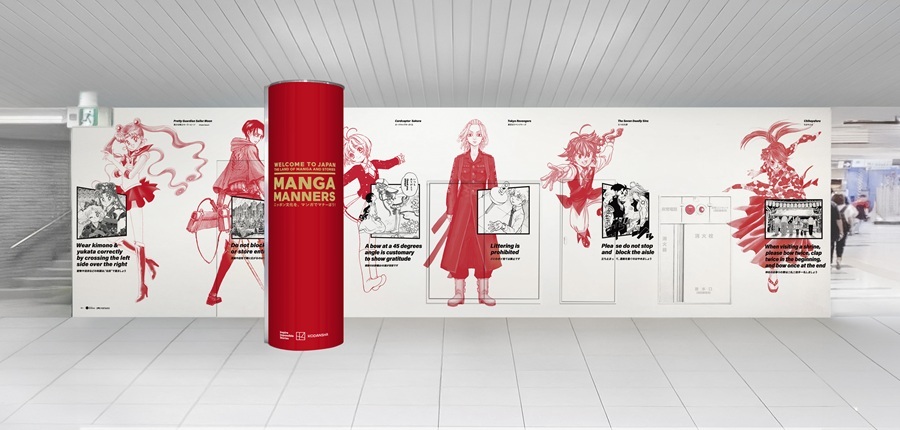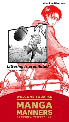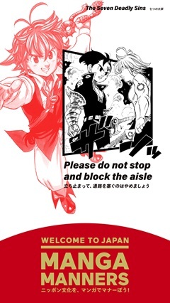 日常生活やレストラン、公共交通機関等で役立つ、日本を快適に旅するためのマナーを、海外でも有名な漫画のカットに添えることで楽しく理解できるようにした広告です。