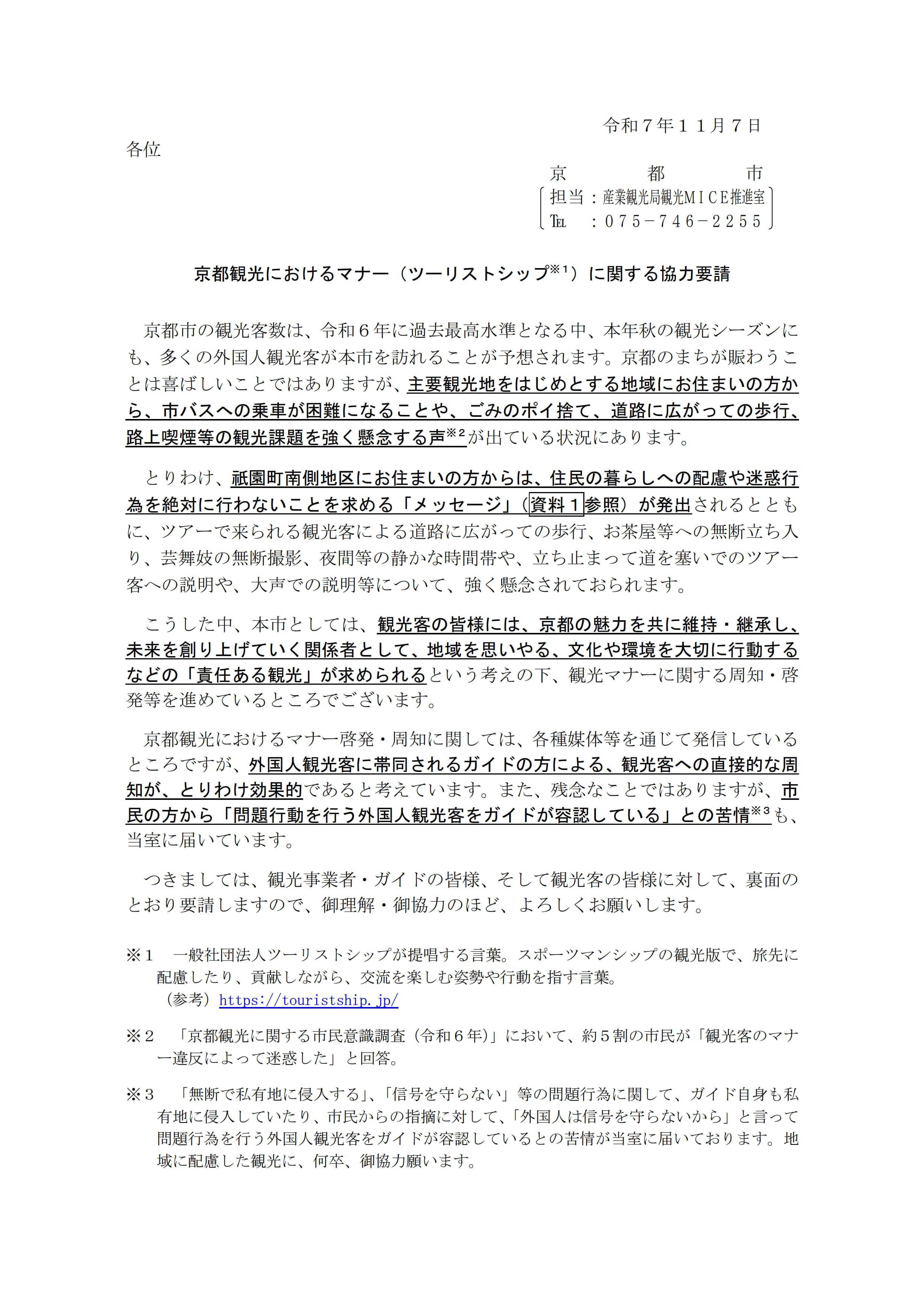 ツアーオペレーター事業者・ガイド等の皆様への協力要請について