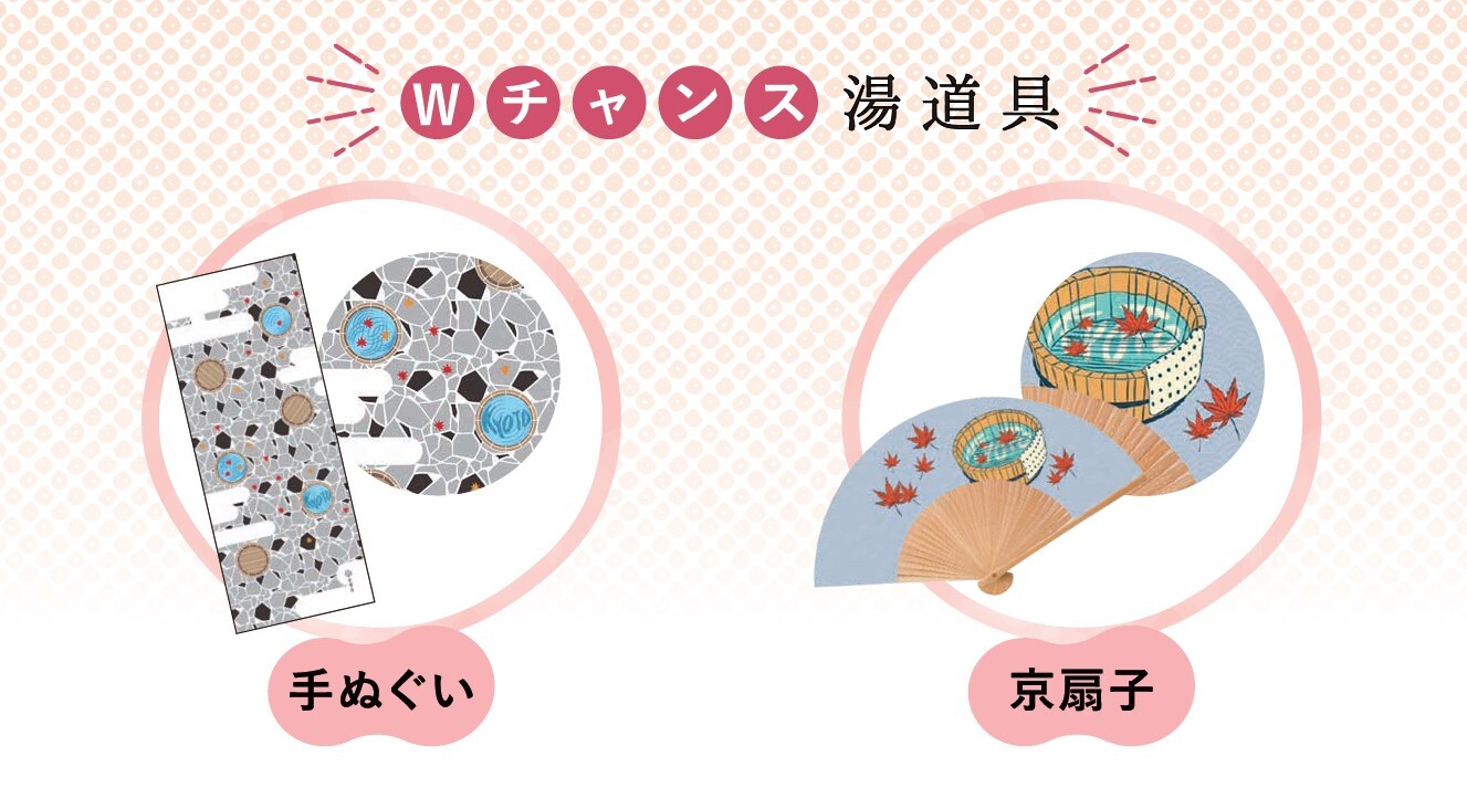 本キャンペーンでは、特設サイトの応募フォームの京都の温泉に関するアンケートに御回答いただいた方に、抽選で温泉協議会加盟施設にて御利用いただける宿泊券や入浴券等の他、京都の伝統工芸で作られた「京都市温泉観光活性化協議会 オリジナル湯道具」をプレゼントします。