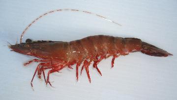 足がきれいな赤色をしていることから「足赤(アシアカ)」と呼ばれる、アシアカエビ。