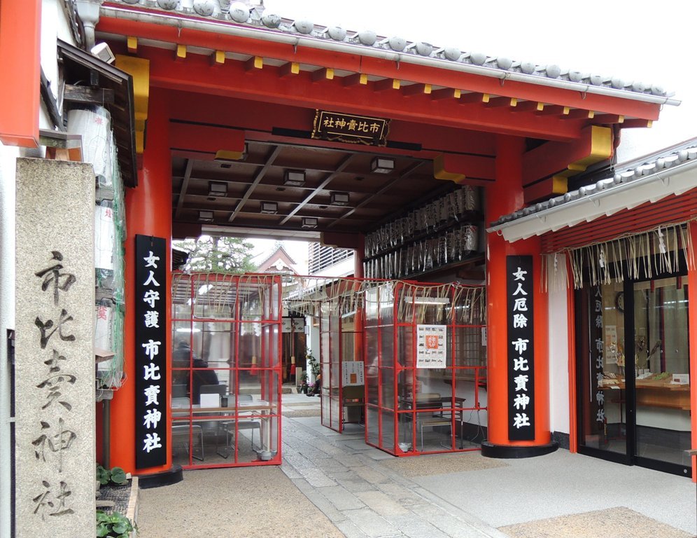 795年に現在の西本願寺の場所に市場の守り神として創建され,1591年に現在地へ。女人厄除けで有名。