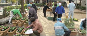 今は「安心安全で環境にやさしい地域づくり」をテーマに,花壇づくりや環境問題などの生涯学習にも地域の方々と共に楽しく取り組んでいます。 ”