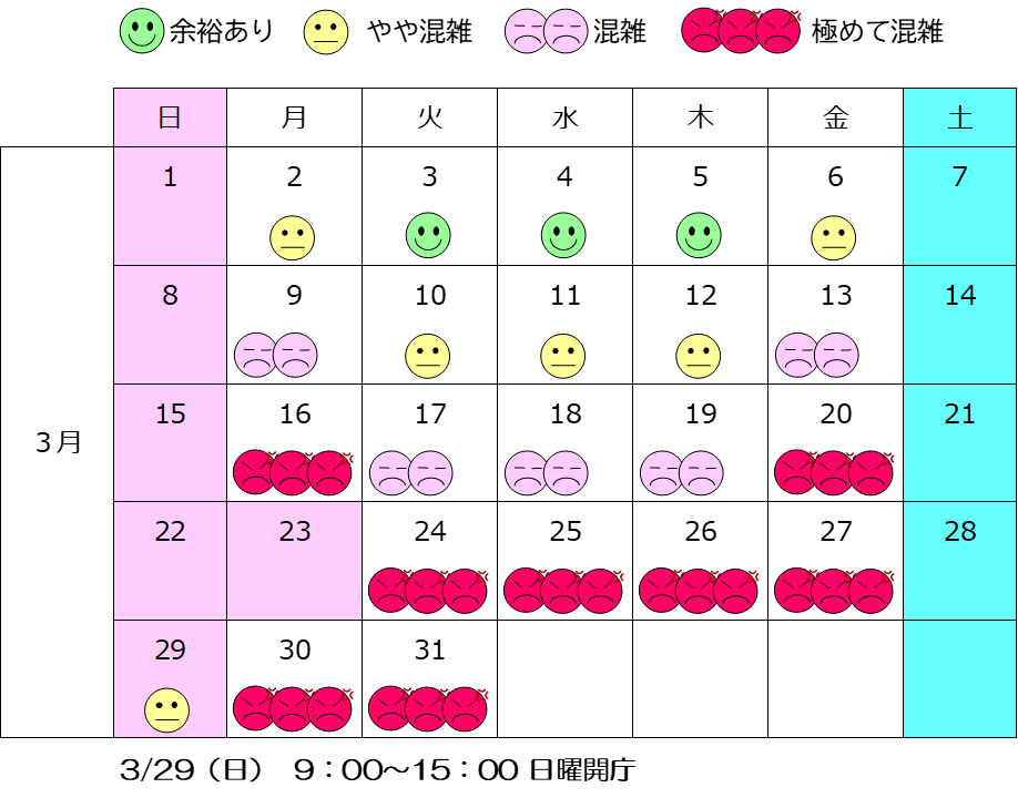 3月窓口混雑予想カレンダー