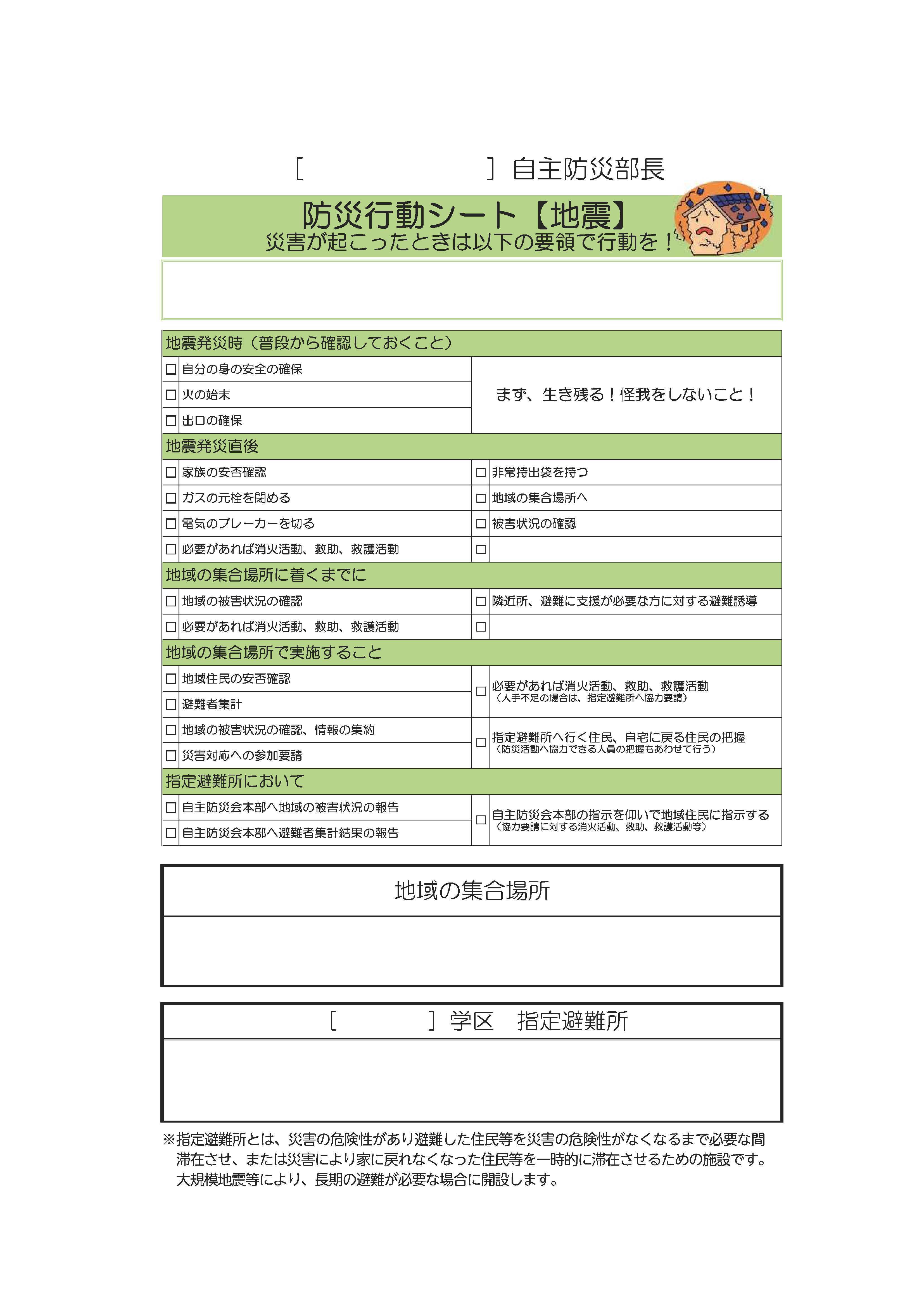 一年間の活動が終了すれば、自主防災会総会などの機会に次の自主防災部長へ一年間の活動について報告し、このファイルを引き継ぎます。