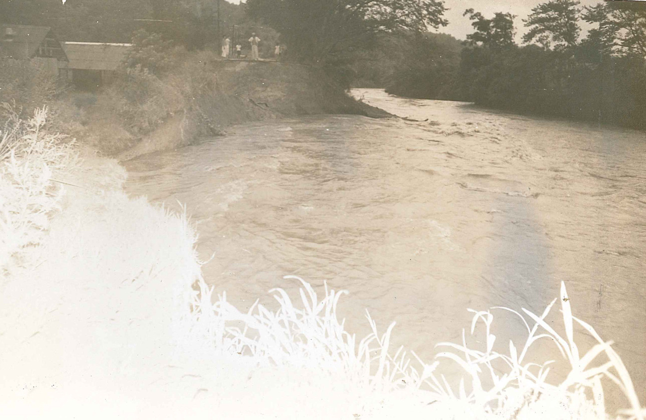 昭和35年8月30日右京区西芳寺川と桂川の合流点消防団による竹流し工法