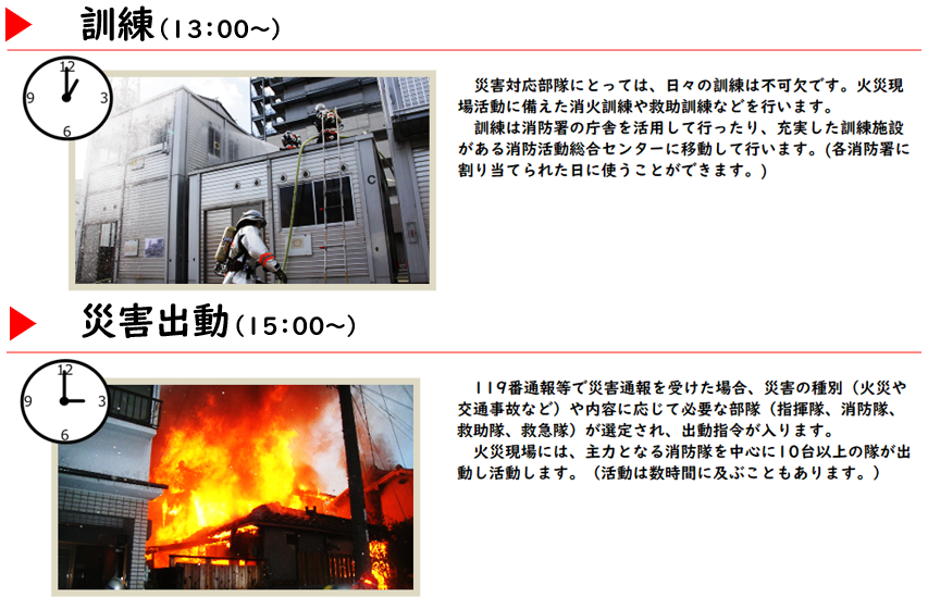 記載の時刻はあくまで例ですので、必ずしもその時刻にその業務を行うわけではないものもあります。