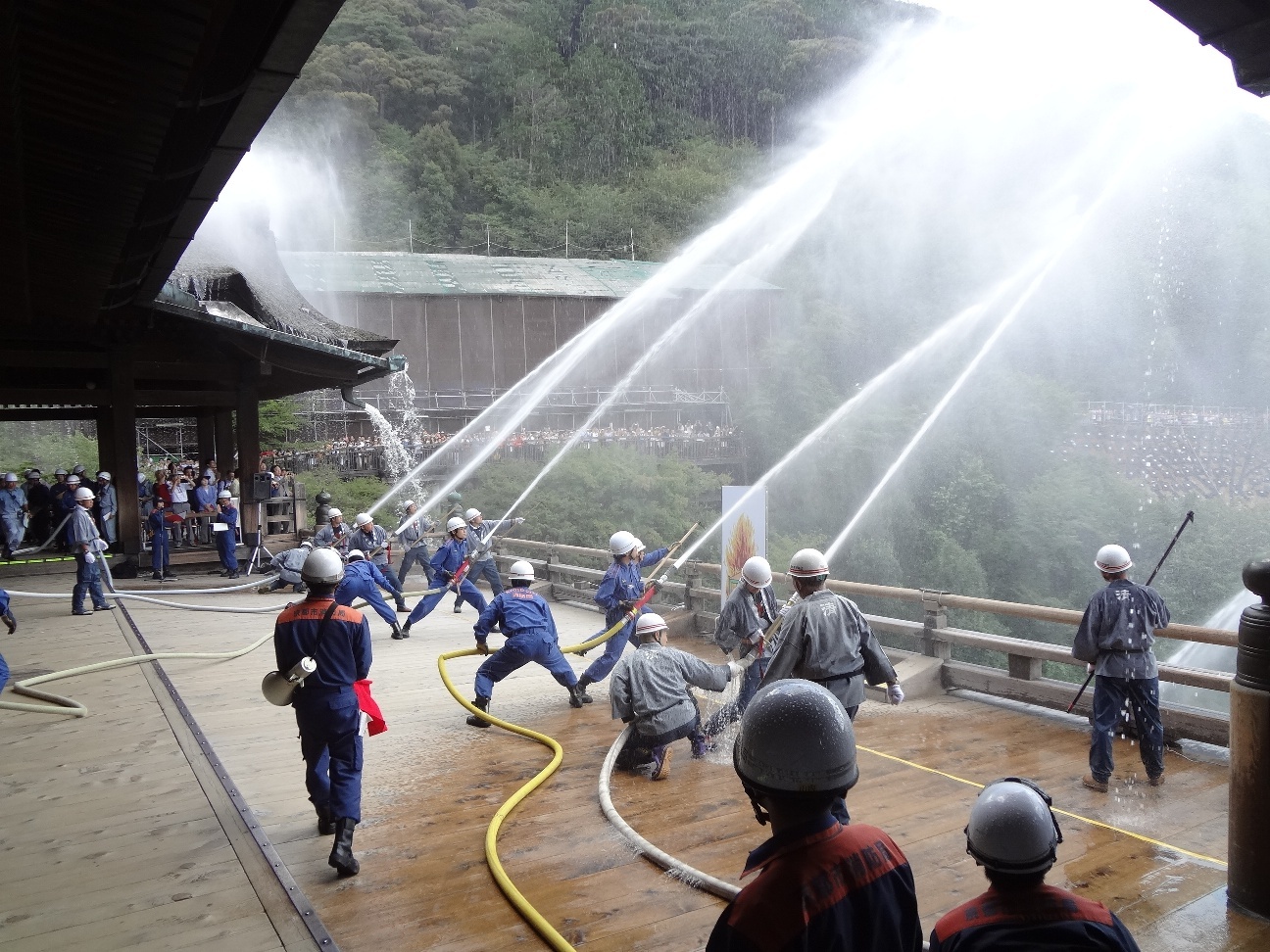 【延焼防止放水システムによる放水訓練(法観寺)】