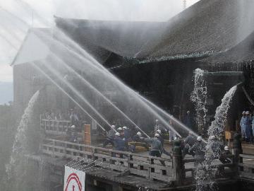 そして、訓練の最後は拠点となる各会場で、警備団、消防団、公設消防隊等による大火災防御訓練により訓練は無事終了しました。
