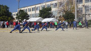 久世分団では,必ず来ると言われている南海・東南海地震や,それに伴って発生の可能性が指摘されている都市直下型地震に備えて,大震災に対応するための訓練を実施しています。
