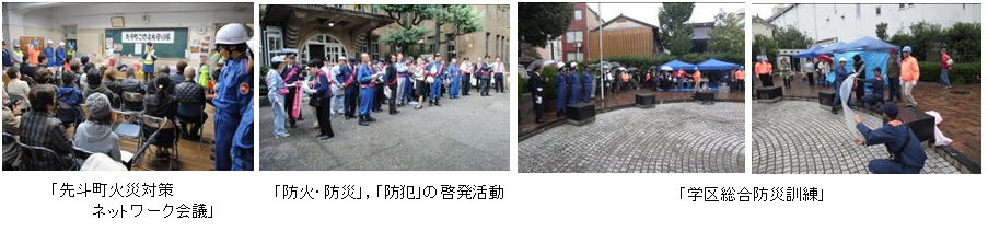 昼夜を問わず,多くの人々で賑わう地域事情から,地震・火災などの発生時の被害軽減を図るため,毎年2回の防災訓練を自主防災会と連携し,実施しています。