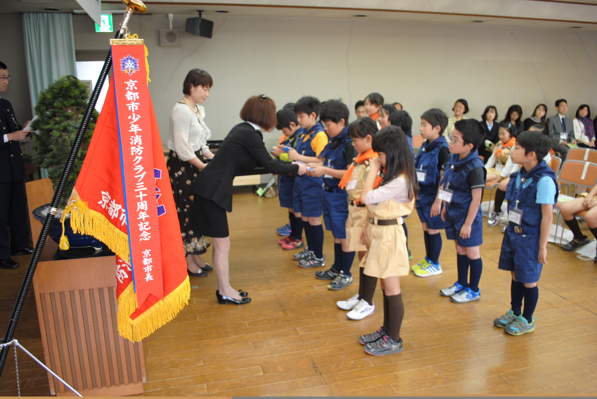 平成27年4月26日(日曜日)に,少年消防クラブ活動を助成していただいている来賓の方々をお招きして「中京少年消防クラブ入退会式」を開催しました。