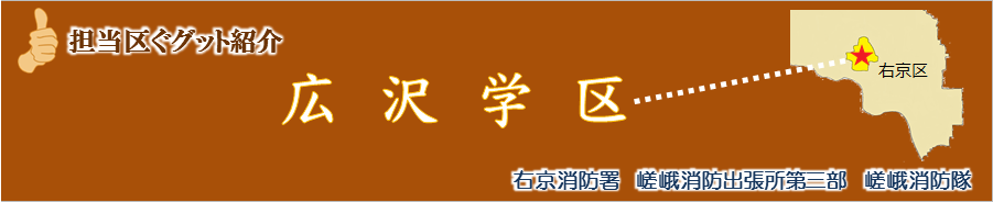 広沢学区は右京区の北西に位置し,平安時代から大宮人が狩猟や若菜摘みなどの風流を楽しんだ景勝地であったことから,現在も豊かな自然環境に恵まれています。学区の北部にある広沢池は,奈良の猿沢池・大分県の初沢池と並んで日本三沢のひとつに数えられており,年末に行われる「鯉揚げ」は京都の師走の風物詩となっています。