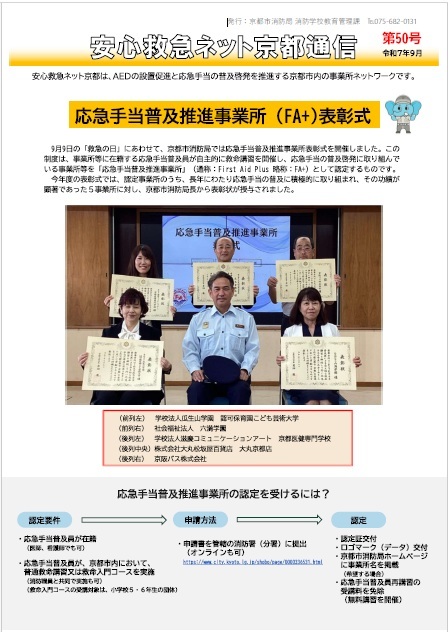 京都市消防局では、安心救急ネット京都を通じて、AEDの普及を推進しています。