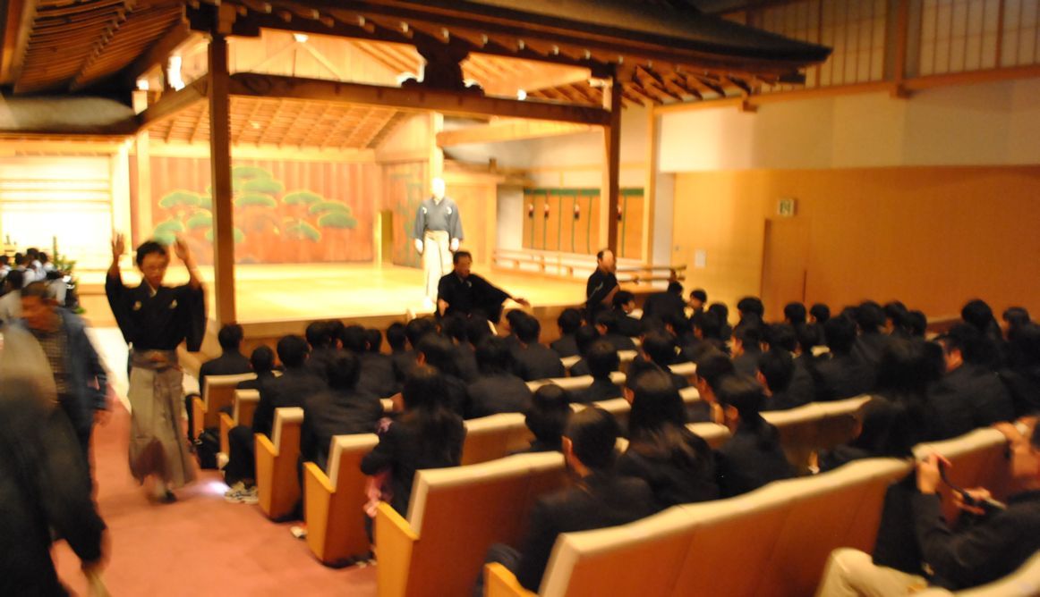 金剛流宗家の公演中に1階舞台裏から出火の想定で,観客にふんした区内の中学生・高校生や大学生,地域住民の皆さんが避難訓練に参加する消防訓練を実施しました。
