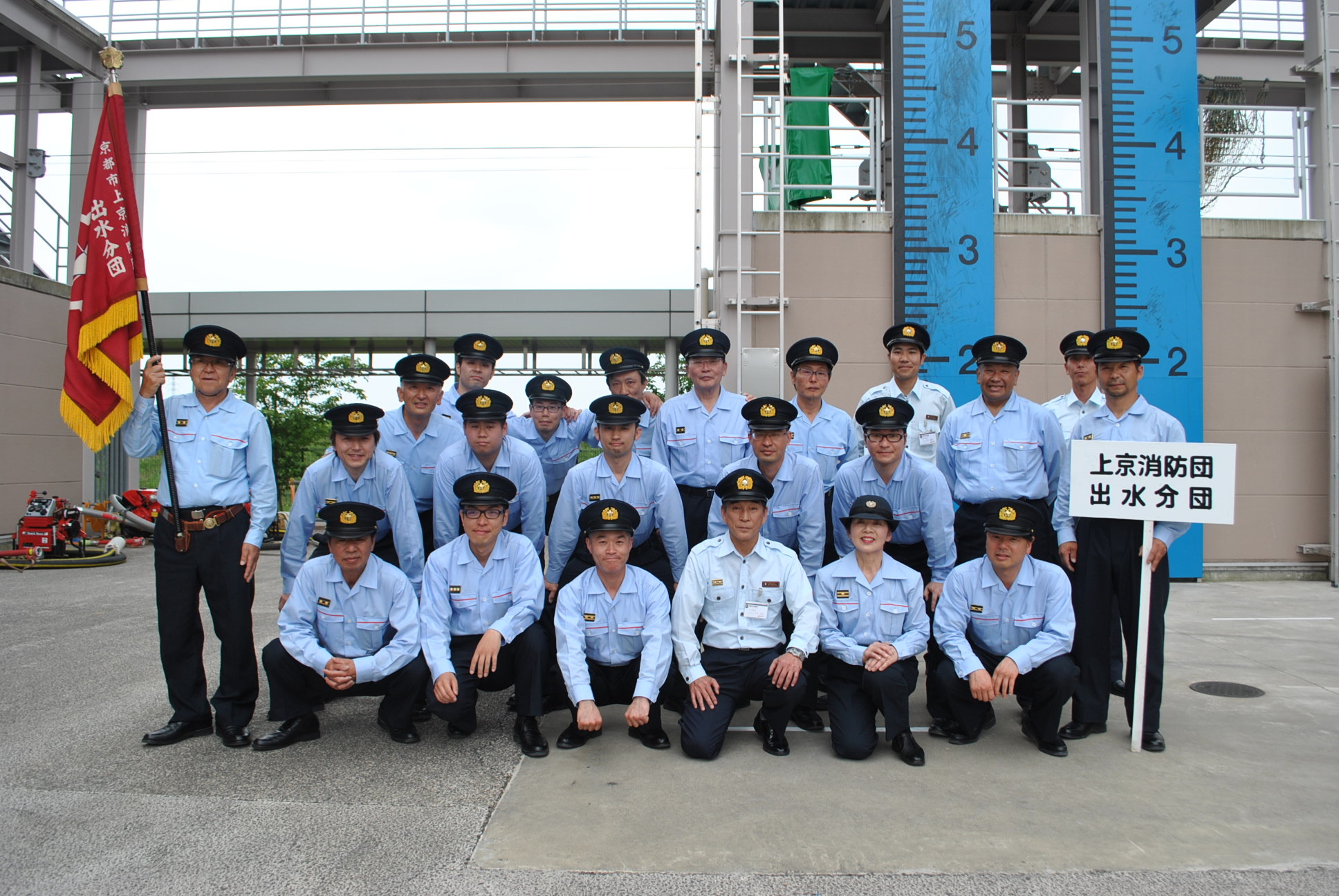 平成28年5月29日(日曜日),京都市消防活動総合センターで開催された,「京都市消防団総合査閲」に,上京消防団の代表として,出水分団が出場しました。