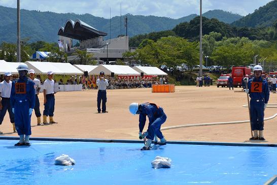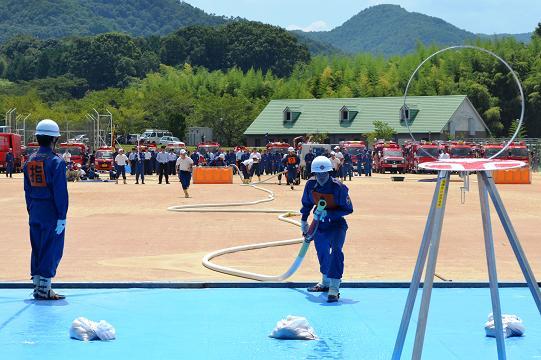 この大会は,消防団員の消防技術の向上と士気の高揚を目的として隔年で実施されているもので,今年は府内の26市町村から「ポンプ車操法」に11,「小型ポンプ操法」に22の市町村が出場しました。