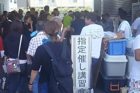 8月22日正午から,露店開設準備で慌ただしい露天商の皆様にセレマシティホール山科の駐車場に集まっていただき,露店開設に伴う火気使用器具の安全な取扱いや事故発生時の初動活動について指定催し講習会を実施しました。