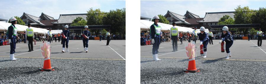 プロの消防隊顔負けの迫力ある訓練に,大きな拍手が起こりました。
