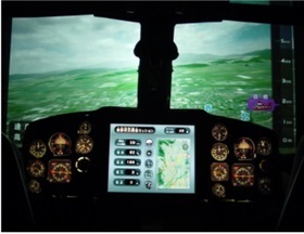 7. 操縦席(19インチ液晶画面及び計器パネル)の液晶画面に,コース図や目的地までの距離などの情報を表示するとともに,速度計,高度計,回転計などの擬似計器を再現