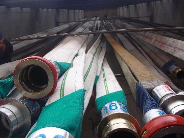 点検の修了したホースは,乾燥させた後,ホースカーやホースバックに詰めて消防車に積み込みます。また,金具の整備など,入念に点検しています。