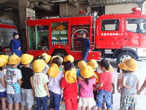 その募集に合わせて,南消防署へは可愛い園児たちが消防車の見学に来てくれています。