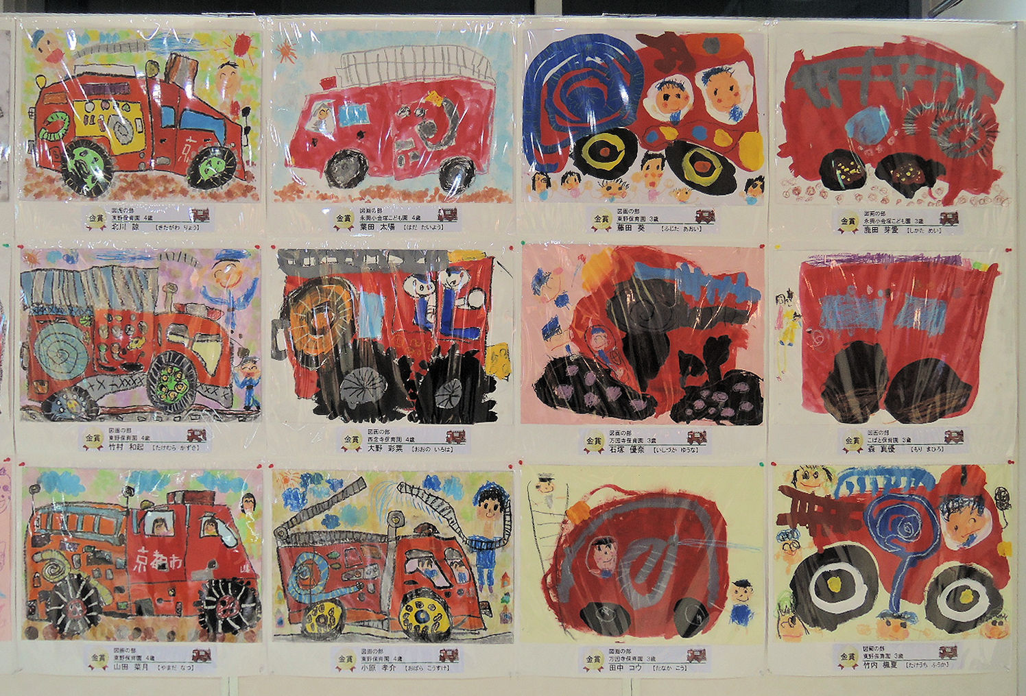 京都市消防局では,子供たちに消防車をより身近に感じていただき,防火の心を育んでいただくために,9月に消防の図画・ポスター・作文の募集を行いました。この事業は昭和29年から始まり,今年で62回を数える歴史ある事業です。