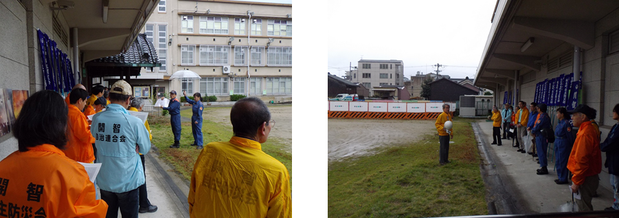 10月29日(日曜日)の総合防災訓練は,台風22号の接近により訓練の実施が危ぶまれましたが,開智,大内の両学区ともに内容を一部変更して実施しました。