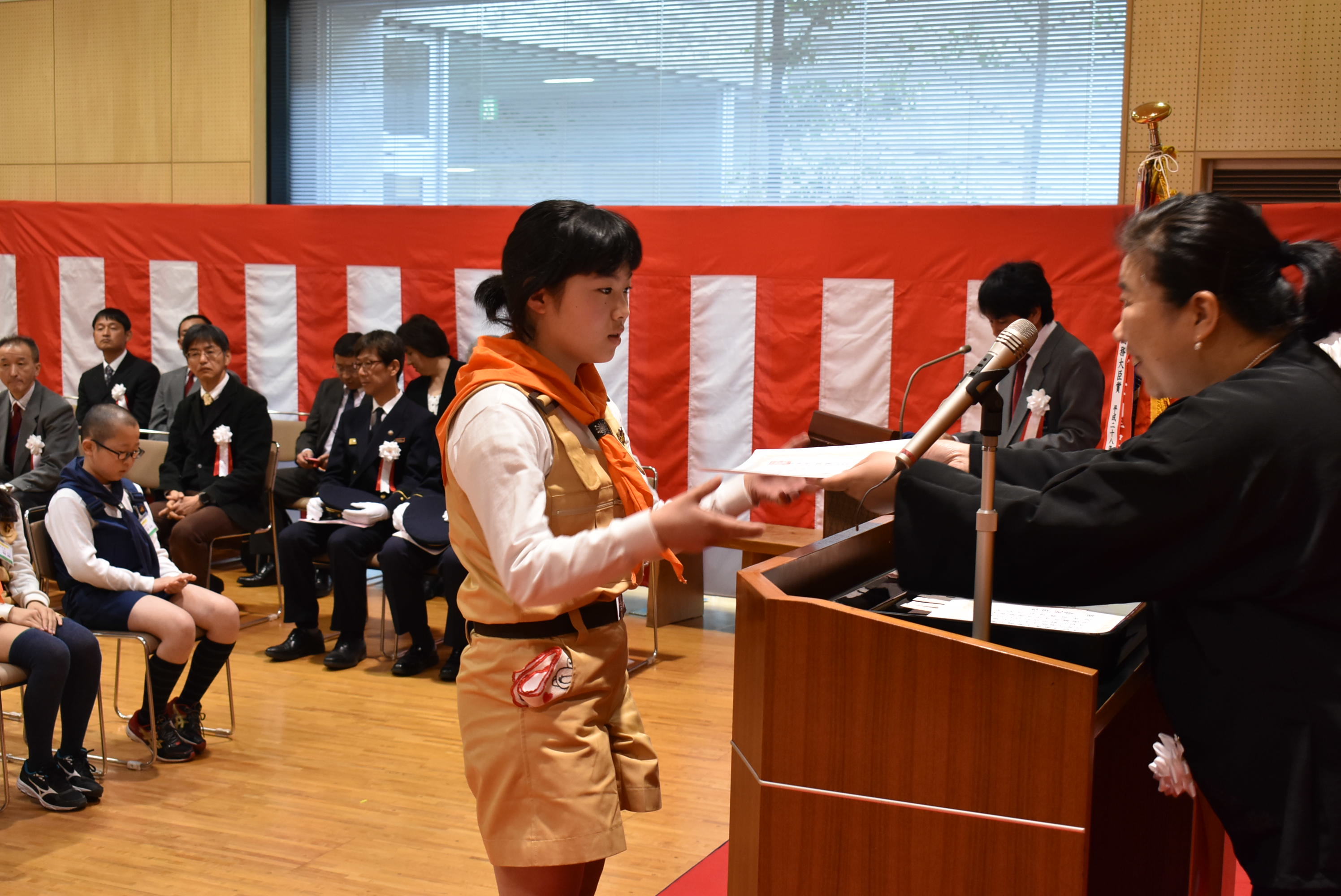 クラブ員を代表して,キャップの板橋班,佐野柑奈さんが育成委員に対して感謝の言葉を述べました。