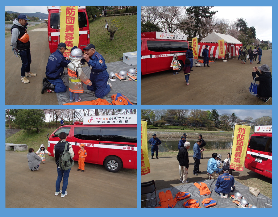 左京消防署(署長 青山 直昭)では,平成30年4月8日(日曜日)に実施された「第44回鴨川茶店」に参加しました(^_-)-☆