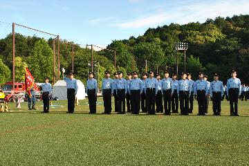 平成30年5月20日の早朝から龍谷大学南大日グラウンドにおいて,「平成30年度伏見消防団総合査閲」が実施されました。