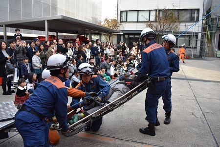 表彰式の後,消防隊と救助隊による訓練の様子を,受賞したした子供たちと家族は,寒い中熱心に見学していました。子供たちから「来年も頑張るぞー」と声が聞こえてきました。