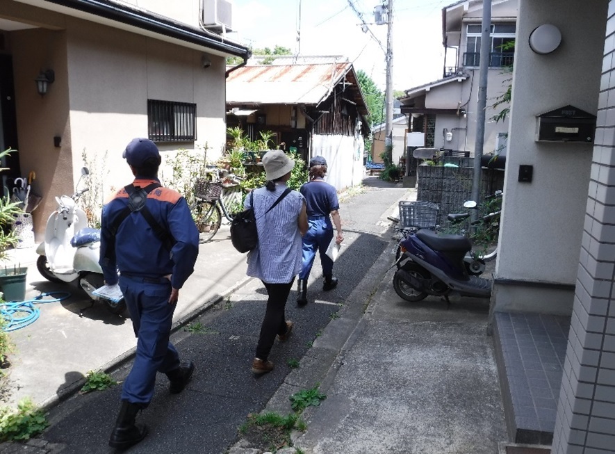 東山消防署では、6月24日に修道消防分団、地域包括支援センター、民生委員及び老人福祉員の皆様に同行していただき、修道学区内の高齢者宅を防火訪問して、きめ細かな防火指導を行いました。