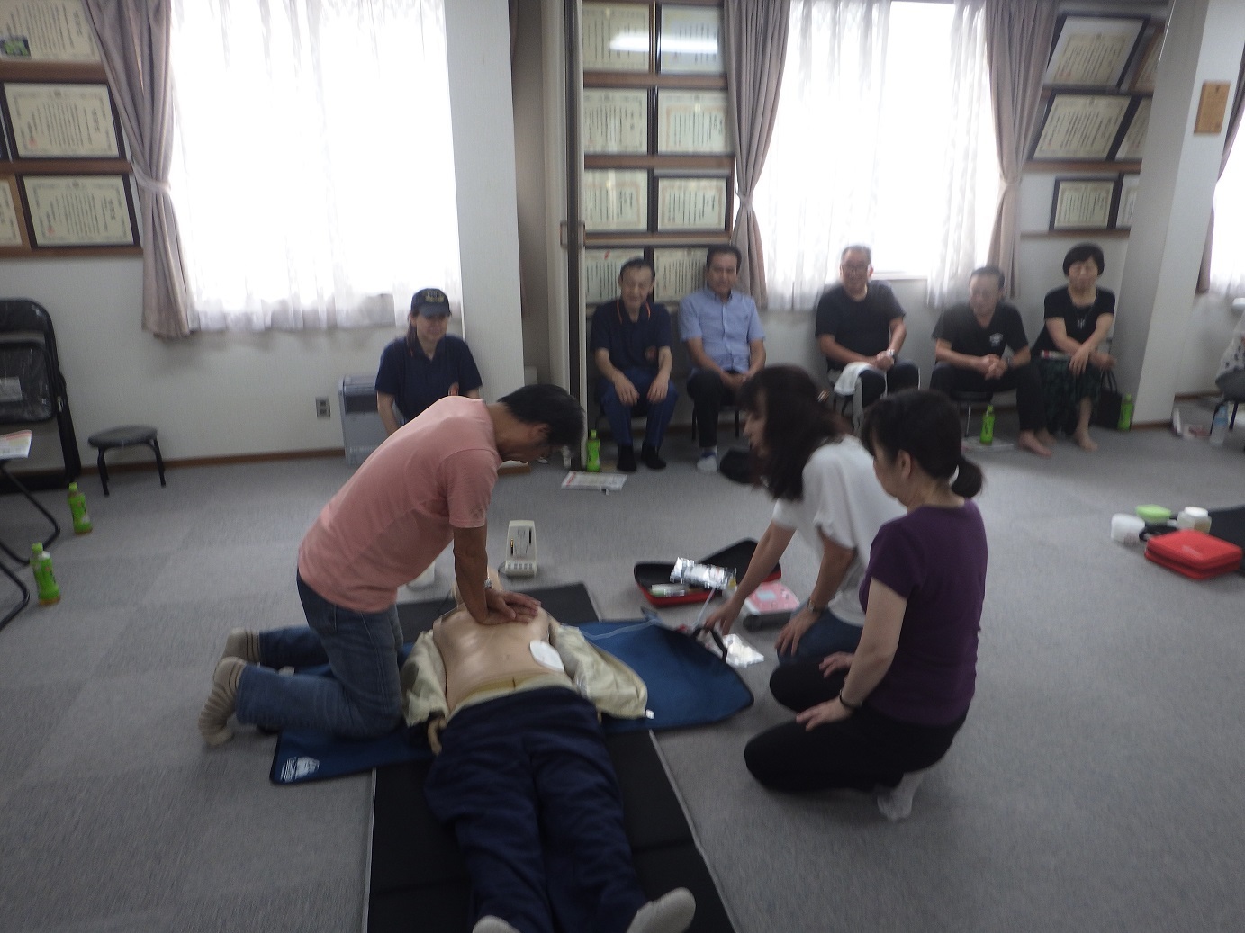 令和元年9月1日(日曜日),朱四集会所で朱雀第四学区体育振興会役員に対し,普通救命講習を実施しました。