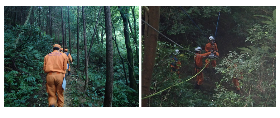 左京消防署(署長 藤 哲也)では,令和元年10月4日(金曜日)に岡崎出張所に配置の岡崎特別救助隊と消防活動総合センターに配置されている上鳥羽特別高度救助隊と合同で山岳救助連携訓練を実施しました。本年1月から9月30日までに区内では,山岳等における救助事故(道迷い,捜索等含む。)が28件発生しています。左京区は緑に包まれた美しい行政区ですが,その分,山岳も多く,年間を通じて多くの事故が発生します。こういった山岳救助事故に早期に安全に対応するべく,常に準備を整えています!!